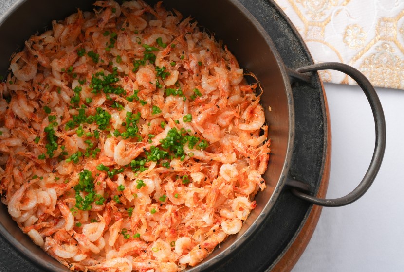 締めは、いわて純情プレミアムひとめぼれを使用した桜海老と旬野菜の炊き込みご飯、甘味には讃岐和三盆プリンを。