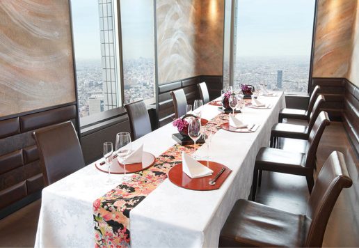 富士山や新宿の高層ビル群を望む59Fからの絶景、ここは地上220mの天空。その魅惑の場所は1秒ごとに表情をかえる。昼は燦々とあふれる陽光、夜は見渡す限りの一面に輝くTOKYOの夜景。地上には存在しないその空間はまさに美食の庭。 店内は自然界の4大要素「天空」「光」「風」「大地」を表現した創りで、NEW JAPANESEスタイルの片意地を張らずゆっくりと懐石料理が食べれるレストランです。