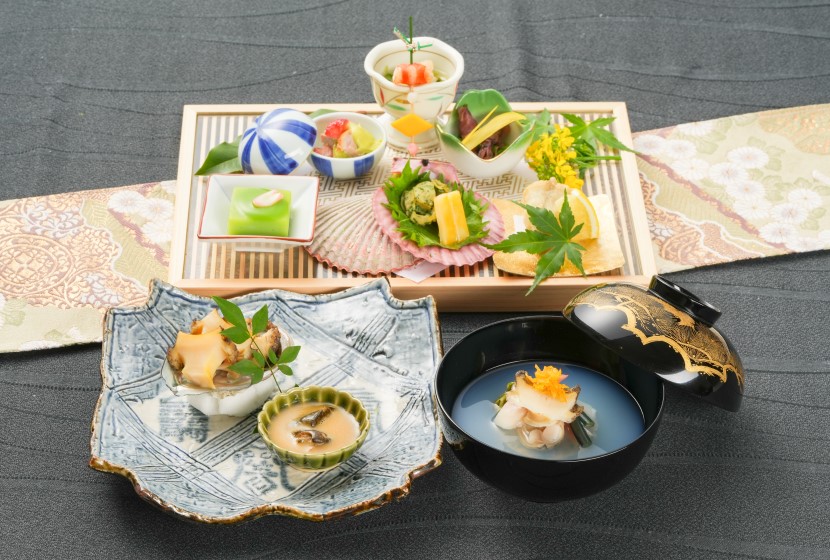 黒あわびと蝦夷あわびを贅沢に使用し、焼物・造里・椀物・箸休めと多彩な技で仕立てた四品を中心に構成した期間限定懐石。